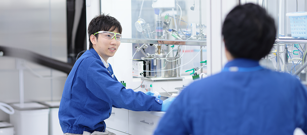 製造部署からの依頼を受け、工程管理や出荷製品の成分測定等の業務に携わります。その他分析機器や試薬の管理を通して分析精度の維持・向上を目指すなど、当社製品の品質保証の役割を担います。さらに開発センターでは、機能化学品等の研究が進められており、それらの分析業務や開発業務に携わることもあります。